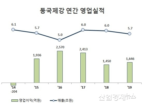 동국제강은 지난 12일 연결재무제표가 포함된 2019년 감사보고서를 제출했다. 이 보고서에 따르면 동국제강은 2019년에 매출 5조6584억원, 영업이익 1646억원, 당기순손실 817억원을 시현했다.