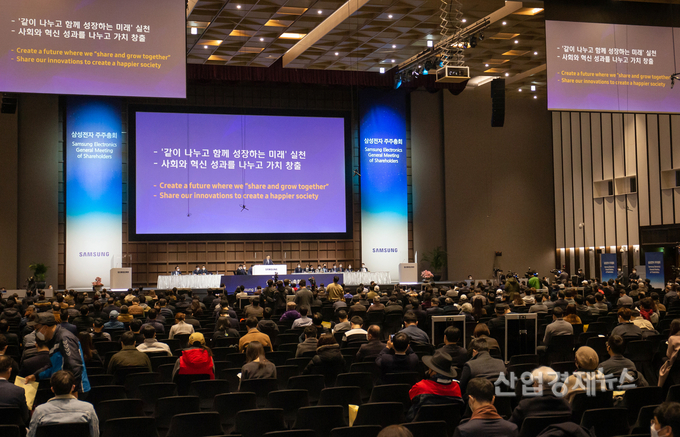 [엔트로피타임즈 강민구 기자] 삼성전자는 18일 경기도 수원시 수원컨벤션센터에서 주주, 기관투자자, 김기남 대표이사(부회장), 김현석 대표이사(사장), 고동진 대표이사(사장) 등 400여명 이 참석한 가운데, '제51기 정기 주주총회'를 개최했다.