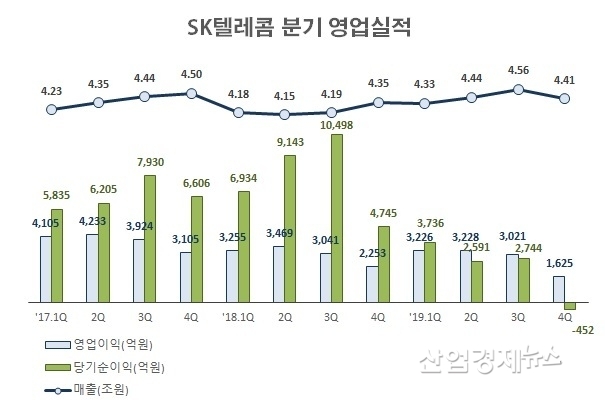 [엔트로피타임즈 문성희 기자] SK텔레콤이 지난해 4분기 적자회사로 전락했다. SK텔레콤의 2019년 4분기 영업실적을 보면 매출은 4조 4106억원, 영업이익 1625억원을 기록했는데, 당기순이익은 452억원 손실이 발생했다.