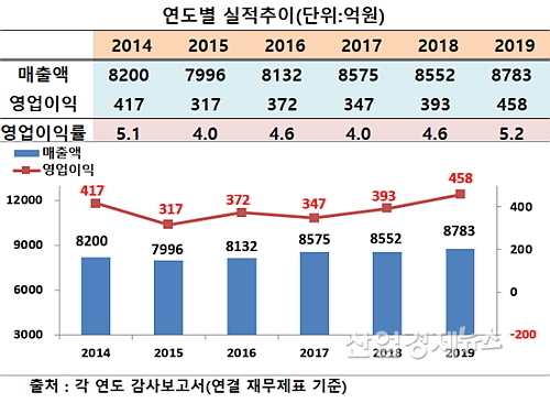이 회사는 지난해 약 457.8억의 연결 영업이익을 시현, 전년도 393.2억 원 대비 16.4% 증가한 양호한 성적표를 시장과 투자자에게 내놨다. 지난 2013년에 기록했던 507.3억 원 이후 7년 만에 가장 많은 영업이익을 시현하는 선전을 펼친 것.