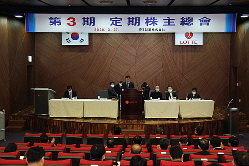 [엔트로피타임즈 민혜정 기자] 롯데제과(대표 민명기)가 3월 27일 오전 10시 양평동 소재 롯데제과 본사 7층 대강당에서 의결권 있는 발행주식 총수(6,416,717주)의 약 87.9%의 주주가 출석(위임포함)한 가운데 제3기 정기주주총회를 개최했다.
