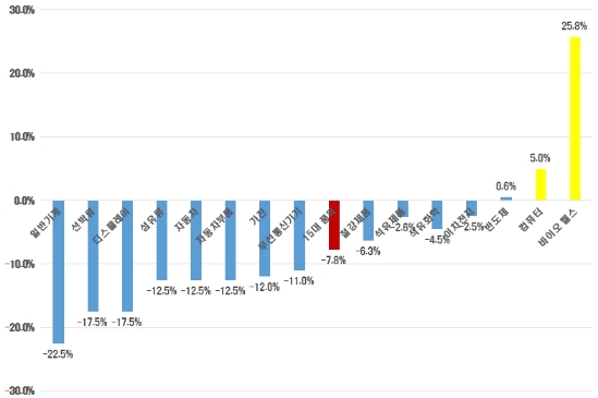 ■ 일반기계, 선박, 자동차 수출 급감...바이오헬스 등 의약품 수출 급증