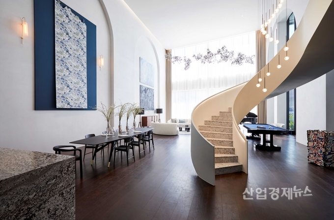 두번째 공간은 다양한 취미를 지닌 가족의 일상을 반영한 주거 공간으로, 높은 층고가 특징인 이국적인 느낌의 515㎡ 복층형 펜트하우스로 구현됐다.