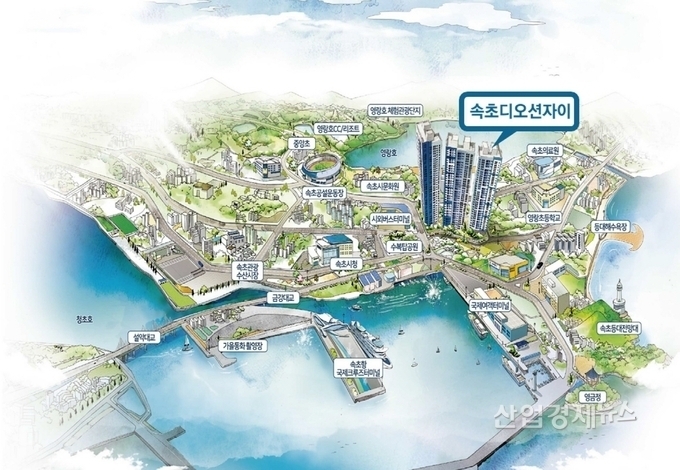 속초디오션자이는 3면이 바다로 둘러싸여 있어서 대부분 가구에서 바다 조망이 가능하며, 조망과 개방감을 높이기 위해 유리난간 이중창으로 설계됐다.