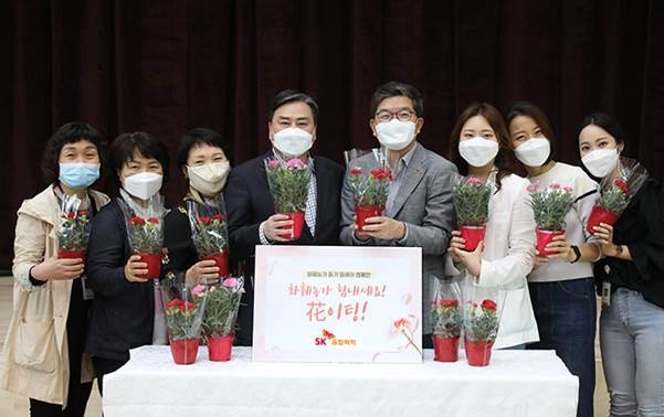 이날 SK종합화학 나경수 사장과 구성원, 서대문노인종합복지관 탁우상 관장과 생활지원사가 참석한 가운데, 서대문노인종합복지관에 카네이션을 전달하는 꽃 전달식이 진행됐다.