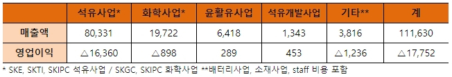 ■ 석유사업 영업손실 1조 6360억원, 배터리 1049억원 손실