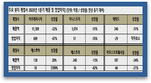 그렇다면 올 1분기 아모레G의 실적을 구성하고 있는 뷰티 계열사들의 실적은 어떠했을까?