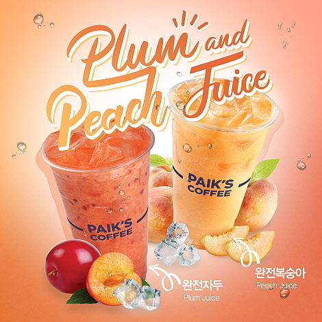 빽다방은 여름시즌 한정메뉴로 '완전자두'와 '완전복숭아' 시리즈 4종을 재 출시했다.