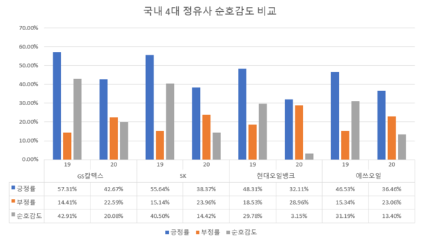 국내 4대 정유사 중 순호감도가 가장 높은 곳은 GS칼텍스로 나타났다.