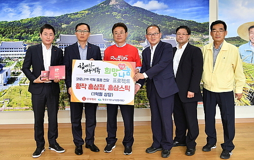 이어 25일에는 경북도청(도지사 이철우)에서 홍삼제품 약 700세트 전달식을 가졌다.