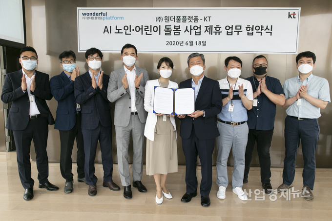 [엔트로피타임즈 박진경 기자] KT(대표이사 구현모, www.kt.com)가 18일 서울 종로구 KT 광화문빌딩 East에서 인공지능(AI) 솔루션 전문 기업 ㈜원더풀플랫폼(대표 구승엽)과 손잡고 ‘노인∙어린이 돌봄 사업 협력을 위한 업무협약(MOU)’을 체결했다고 밝혔다.