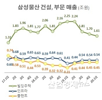 하지만 하락세를 이어가는 주택사업을 받쳐 줘야할 인프라사업과 플랜트사업마저 횡보하는 모습을 보이면서 삼성물산 건설부문은 실적부진을 이어가고 있다.