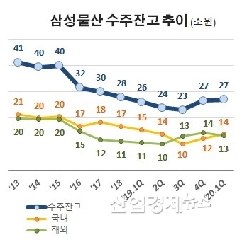 앞으로의 경영실적을 가늠해 볼 수 있는 수주면에서도 삼성물산은 5년 전 40조원의 수주잔고를 보유하고 있었지만 국내주택호황기에 오히려 23조원까지 줄었고 지난해말 다소 증가하긴 했지만 올해도 여전히 20조원 대에 머물러있다.