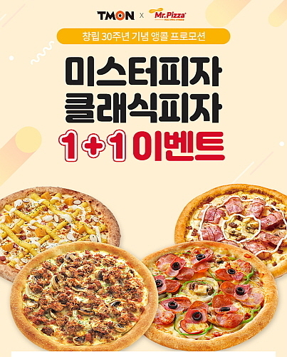 미스터피자는 언택트 소비 트렌드에 맞춰 오는 7월 12일까지 타임커머스 티몬의 대표 특가매장인 ‘티몬블랙딜’을 통해 포장 주문 시 사용 가능한 클래식 피자 1+1 쿠폰을 판매한다.