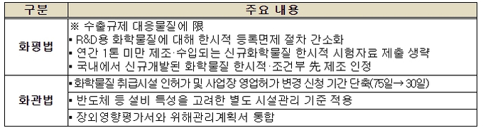 정부의 일본 수출규제 대응 화평·화관법 규제 개선 주요 내용