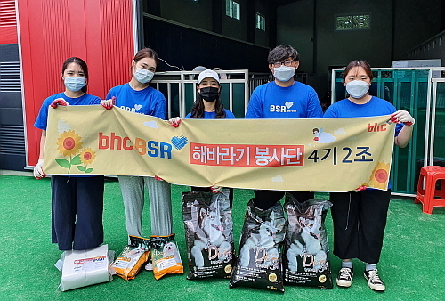 먼저 bhc치킨 대학생 봉사 단체 ‘해바라기 봉사단’ 4기 2조가 지난 6일 경기도에 위치한 유기동물 보호소 쉼뜰을 찾아 유기견 돌봄 봉사활동을 진행했다.