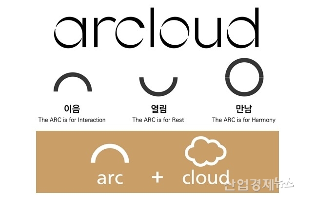또한 블랙을 메인 컬러로 사용해 고급스러운 이미지를 강조하고 햇살 좋은 날의 그림자처럼 삶의 배경이 되는 공간임을 표현하고자 했다. 전체적인 디자인은 arc(호)를 모티프로 했으며, arc형의 독특한 글꼴은 아클라우드의 ‘열린 공간’과 그 안에서 이뤄지는 다양한 사람들의 ‘이음’과 ‘만남’을 의미한다.