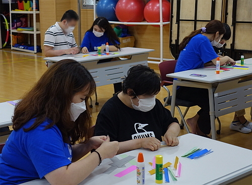 이어 점심시간 이후 진행된 미술 프로그램에서는 발달장애인과 1:1 매칭을 통해 참여자 스스로가 종이 목걸이를 직접 만들 수 있도록 세심한 배려로 봉사활동에 임한 것으로 전해졌다.