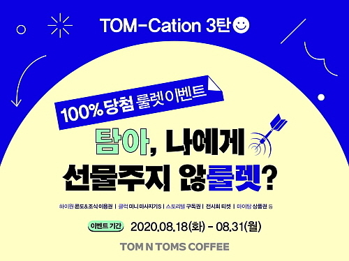 토종 커피전문점 탐앤탐스는 긴 장마와 더위에 지친 고객들을 위해 100% 당첨 룰렛 이벤트를 오는 8월 31일까지 진행한다.