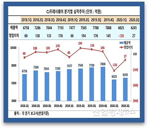 한화투자증권 남성현 연구원은 “동사의 2분기 실적은 코로나19에 따른 외식경기 악화에 CJ그룹사 공급 매출 감소가 주요하게 작용, 당사 추정치를 하회했다”며 “하반기에도 전방산업의 부진은 이어질 전망이나 사회적 거리두기 완화, 사업구조 효율화, FC 경로 확대로 인해 실적은 점차 개선될 것”으로 내다봤다.