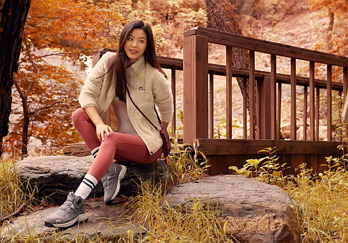 또한 플리스에 들어간 포인트 색상에 맞춘 모자를 착용해 같은 의상, 다른 느낌을 보여줬다.