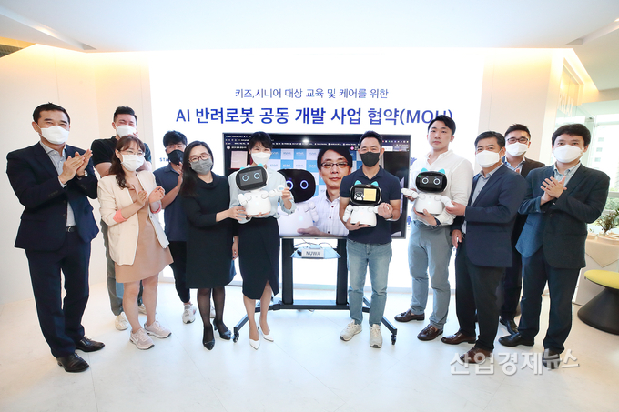 KT는 17일 키즈와 시니어를 위한 차세대 'AI 반려로봇'을 상용화하기 위해 스테이지파이브, 누와 로보틱스, 아쇼카 한국과 공동 사업을 위한 업무협약’을 체결했다고 밝혔다.