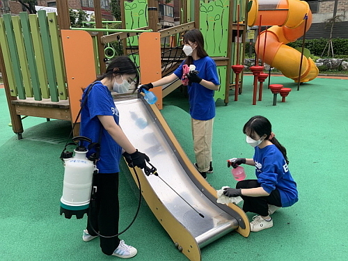 bhc치킨은 자사 운영 대학생 봉사 단체인 ‘해바라기 봉사단’을 통해 방역에 취약한 현장을 방문, 소독 등 방역 활동을 펼쳤다.