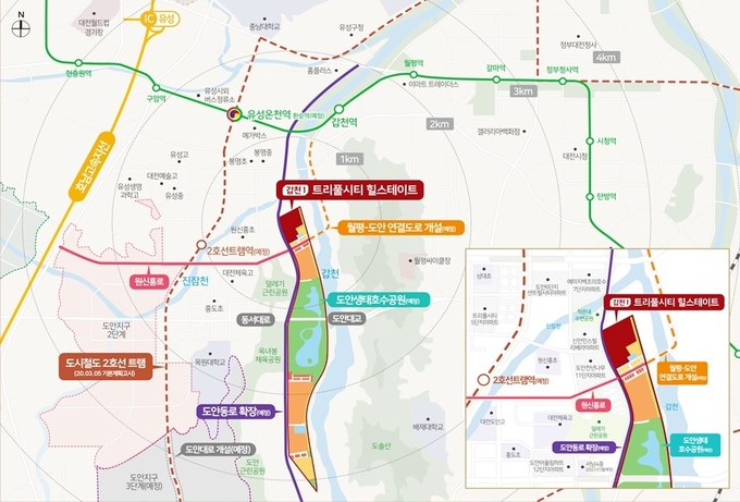 이번에 선보이는 ’갑천1 트리풀시티 힐스테이트’는 지난 2018년 선보인 ‘갑천3 트리풀시티’(1,762세대)에 이어 갑천친수구역에서 두 번째로 공급되는 단지로 실수요자들을 중심으로 올해 분양대상 아파트 가운에 가장 뜨거운 관심을 모으고 있다.