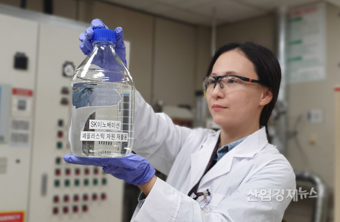 SK이노베이션 기술혁신연구원은 오래도록 쌓아 온 석유화학제품 처리 노하우와 연구개발 역량으로 폐플라스틱에서 뽑아낸 열분해유의 불순물을 대폭 줄여 시험생산 규모로 솔벤트와 윤활기유 등 시제품 제조에 성공했다.