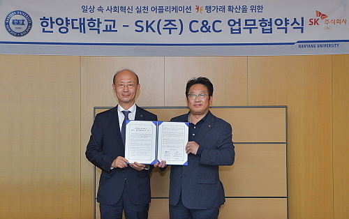 이를 위해 SK㈜ C&C(대표 박성하)는 지난 5일, 서울 성동구 한양대 교학부총장실에서 한양대와 ‘행가래(幸加來)를 통한 생활 속 사회적 가치 확산 협력 협약’을 체결했다고 밝혔다.