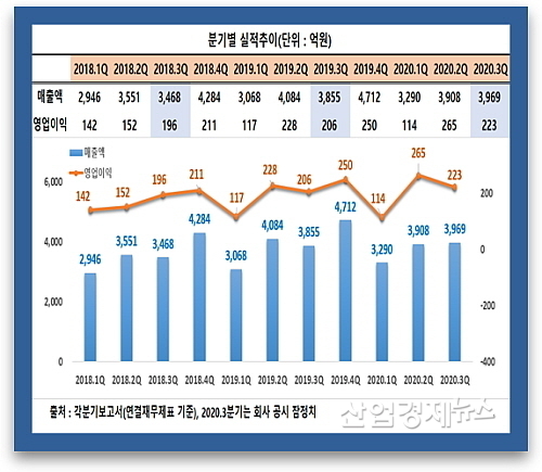 이로써 3분기까지 누적 실적도 전년 동기와 비교해 매출은 1.5% 증가한 1조1167억 원, 영업이익 또한 9.2% 가량 신장한 603억을 기록하는 등 창사 최대 실적이라는 양호한 성적표를 시장과 투자자에게 내밀었다.