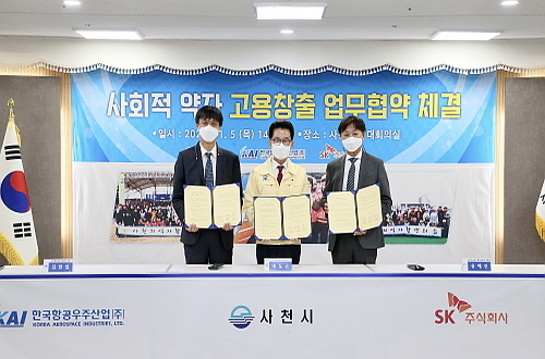 이 날 경상남도 사천시청 대회의실에서 열린 협약식에는 송도근 사천시장, 김한일 한국항공우주산업 상무, 유해진 SK㈜ C&C 제조Digital부문장 등 관계자들이 참석해 취약 계층을 대상으로 지속 가능한 일자리 창출 모델을 개발하기 위해 긴밀한 소통과 협력을 다짐했다.