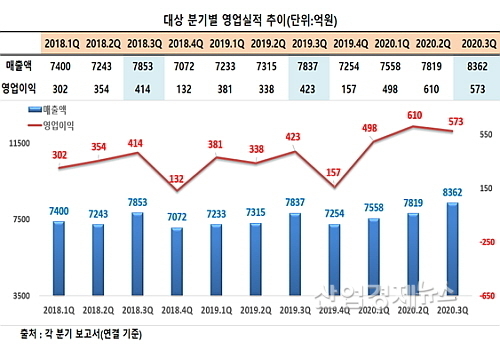 영업이익 또한 전년 동기 423억 대비 35.5%나 증가한 573억 원을 시현함으로써, 외형과 손익 모두 올해 1, 2분기의 성장 추세를 이어가는 선전을 펼쳤다.