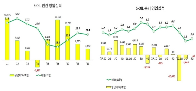 S-OIL은 그동안 국내 정유사들이 그렇듯이 국제유가와 정제마진 등 경영환경 변화에 따라 영업실적도 오르락 내리락을 반복하는 구조적인 문제점을 안고 있었다.