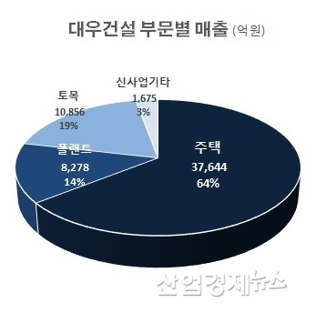 대우건설이 많은 물량의 주택공급에도 영업실적이 하락하고 있지만, 내년에도 또 주택공급물량을 크게 가져가는 이유는 대우건설의 사업구조가 주택사업에 큰 비중을 두고 있기 때문으로 분석된다.올해 3분기까지 대우건설의 부문별 매출을 살펴보면, 주택사업이 64%를 차지하고 있고, 토목이 19%, 플랜트가 14%를 차지하고 있다.