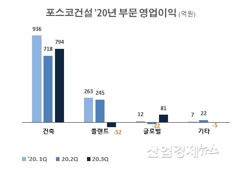 올해 1분기 936억원의 영업이익을 실현했던 건축부동산 부문은 2분기 718억원으로 이익이 감소했고 3분기에도 794억원을 실현해 700억원대에 머물렀다.