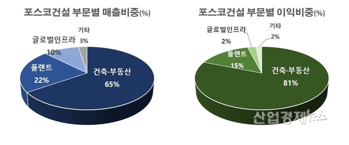이에따라 주택사업 비중이 큰 포스코건설도 회사의 영업실적을 이끌던 건축부동산 부문의 영업이익이 감소하고 있는 모습을 보이고 있다.