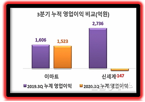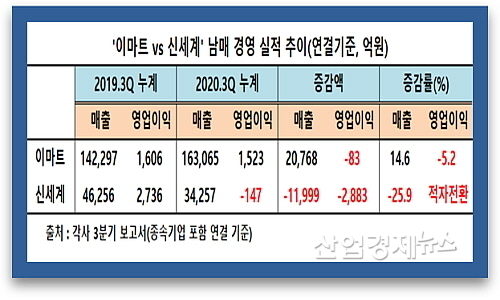 3Q 영업이익 증가율, ‘이마트 –5.2% vs 신세계 적자전환’...신세계 완패