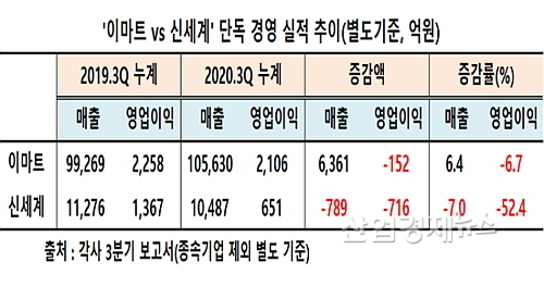 별도기준 외형과 손익에서도 이마트의 완승..‘장군 멍군’은 없었다