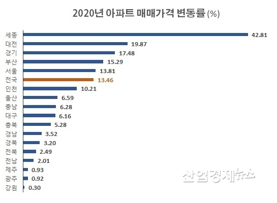 대전, 경기, 부산, 서울 등 주요지역의 매매가격 상승률은 전국 평균을 웃돈 반면, 강원, 광주, 제주는 아파트 가격이 거의 제자리에 머무르면서 지역별 가격 차이를 더 벌렸다.