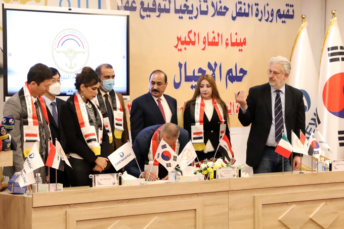 지난달 30일 바스라주에 위치한 항만공사에서 파르한 알 파르투시 항만공사 사장과 대우건설 김진우 현장소장이 총 5건의 신항만 후속공사를 수의로 계약 체결했다.
