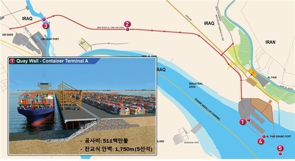 이라크에서는 전후 재건사업의 일환으로 발전, 석유화학 시설, 인프라 등에 대규모 투자가 지속되고 있다. 특히 이라크 정부는 알 포 신항만을 터키 및 인근 국가간 철도와 연계 개발하여 세계 12대 항만으로 만들 계획을 가지고 있다. 따라서 향후 연결 철로, Dry Bulk터미널, 배후 단지 및 해군기지 조성 등 대형 후속 공사가 잇따를 전망이다.