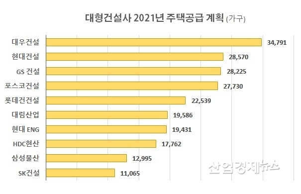 그 뒤로는 현대건설이 2만8570 가구, GS건설이 2만8225 가구, 포스코건설이 2만7730 가구로 뒤를 이었다.
