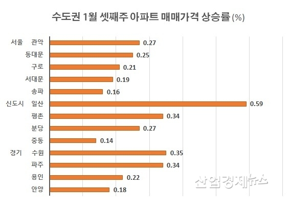 서울에서 상승세가 가장 컸던 관악구가 0.27% 였던 반면, 일산은 0.59%, 평촌은 0.34%, 분당 0.27% 등 신도시 아파트가격 모두가 상승률이 커졌다.