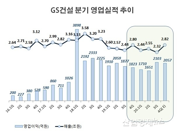 GS건설이 최근 공시한 2020년 잠정영업실적에 따르면 GS건설은 지난해에 매출 10조1229억원, 영업이익 7512억원, 세전이익 5200억원을 기록했다. 당기순이익은 발표하지 않았다.