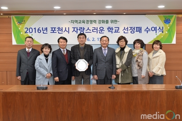 (미디어온) 포천시는 15일 관내 교육경쟁력 강화를 위해 추진한 2016년 포천시 자랑스러운 학교 공모사업에 선정된 8개교에 대해 학교장과 학부모대표 등 40여명이 참석한 가운데 선정패를 수여했다고 밝혔다.