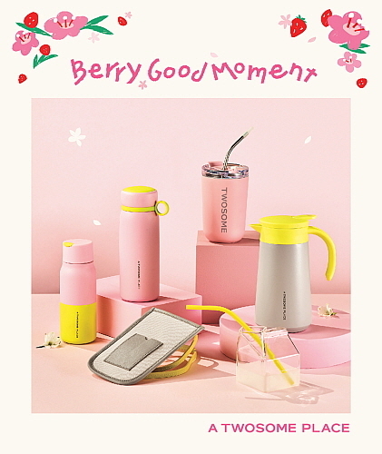 화사한 핑크 색상의 스테인리스 텀블러인 ▲투썸 베리 스트로우와 우유갑을 모티브로 한 ▲투썸 베리 밀크 글라스, ▲투썸 베리 텀블러와 ▲투썸 베리 보틀, ▲투썸 베리 케틀 등이며,