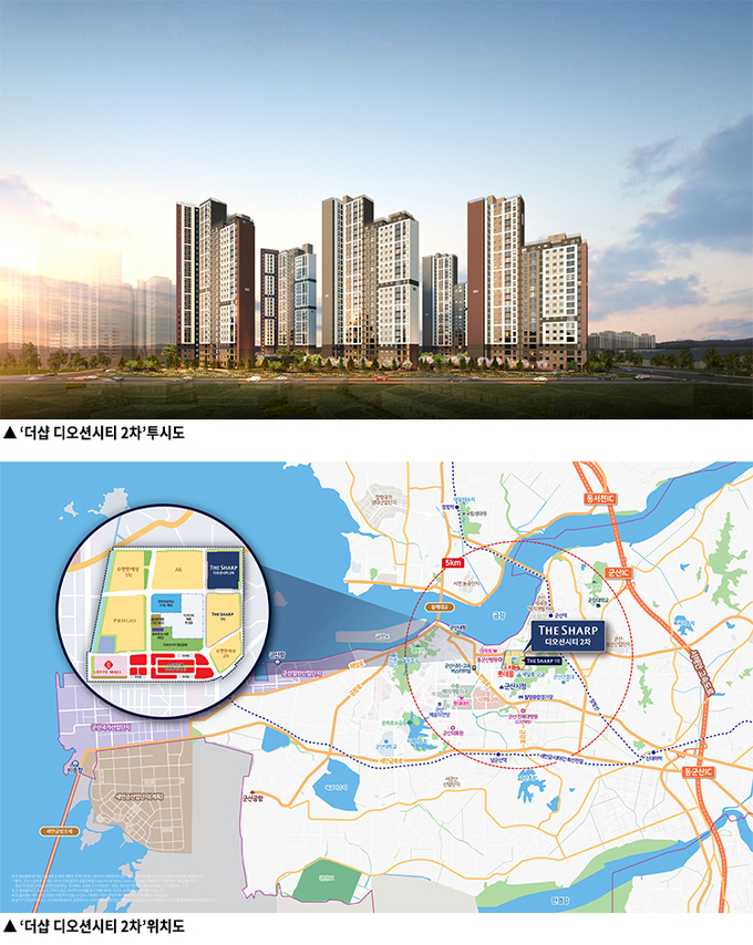 더샵 디오션시티 2차가 들어서는 군산 디오션시티는 약 59만㎡의 면적에 공동주택 6천 400여세대, 거주인구 1만 7000여명이 계획된 미니 신도시급 복합도시로, 도시 내 전북 최대 규모의 롯데몰이 있으며 금강유치원(가칭), 연안초(가칭), 군산동부권도서관 등이 들어설 예정이다. 차로 10분 이내에 군산시청, 시외버스터미널, 월명종합경기장, 동군산병원이 위치해 정주여건도 뛰어나다.