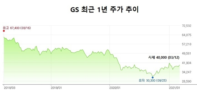 이러한 분석을 반영하 듯, 유가와 정제마진은 지난해 연초 수준을 회복했음에도 불구하고 GS칼텍스의 이익에 큰 영향을 받는 지주회사 (주)GS의 주가는 아직도 연초 수준에 한참 못미치는 가격에 머무르고 있다.