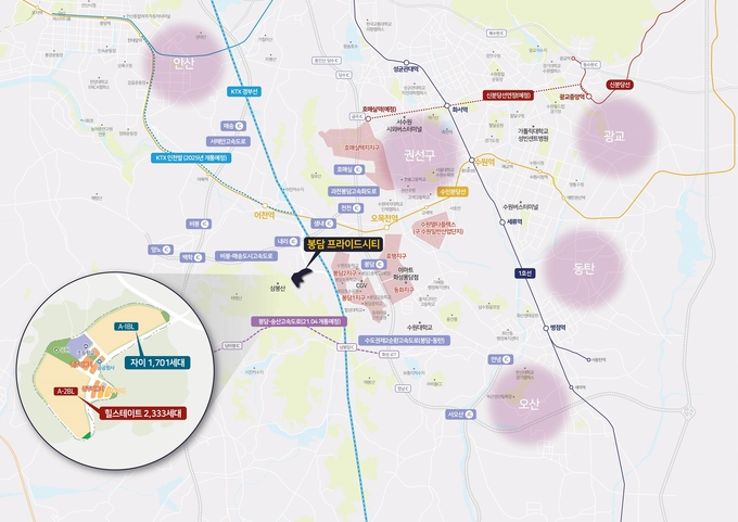 봉담 프라이드시티가 들어서는 화성봉담 내리지구 도시개발사업은 경기도 화성시 봉담 내리지구 545번지 일원 약 26만 6,540㎡를 개발하는 민간도시개발 사업이다. 이곳에는 봉담 프라이드시티 4,034세대와 단독주택, 준주거시설 등의 주거시설과 초등학교 1개소, 공원 5개소, 주차장 2개소, 공공청사 1개소, 도로 등의 도시기반시설이 들어설 예정으로 사업이 완료되면 1만 여명이 거주하는 브랜드 주거타운으로 탄생할 예정이다.